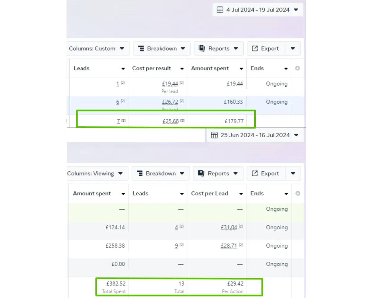On 25th June, we launched the marketing campaigns, and within just 24 days, we generated 21 qualified leads for the business. The results were as follows: